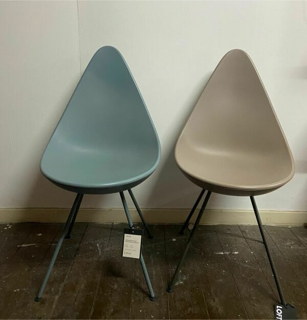 Fritz Hansen - Set Eetkamerstoelen - Drop Monochrome blauw & clay incl. Kussen - Set van €780,- voor €479,-