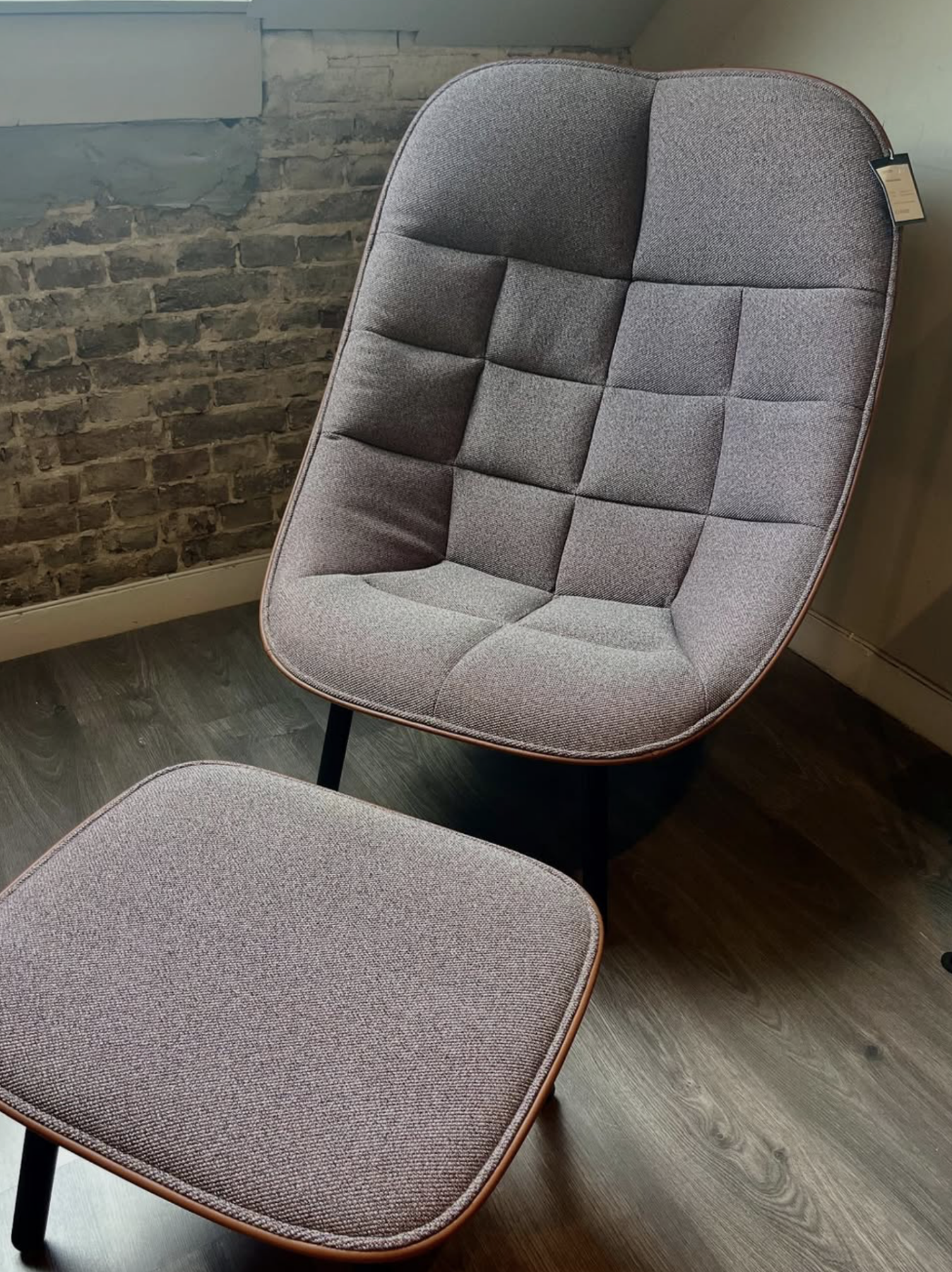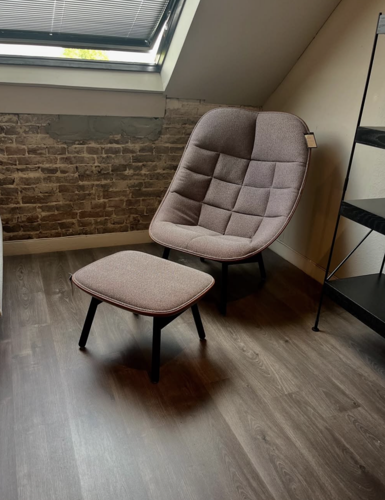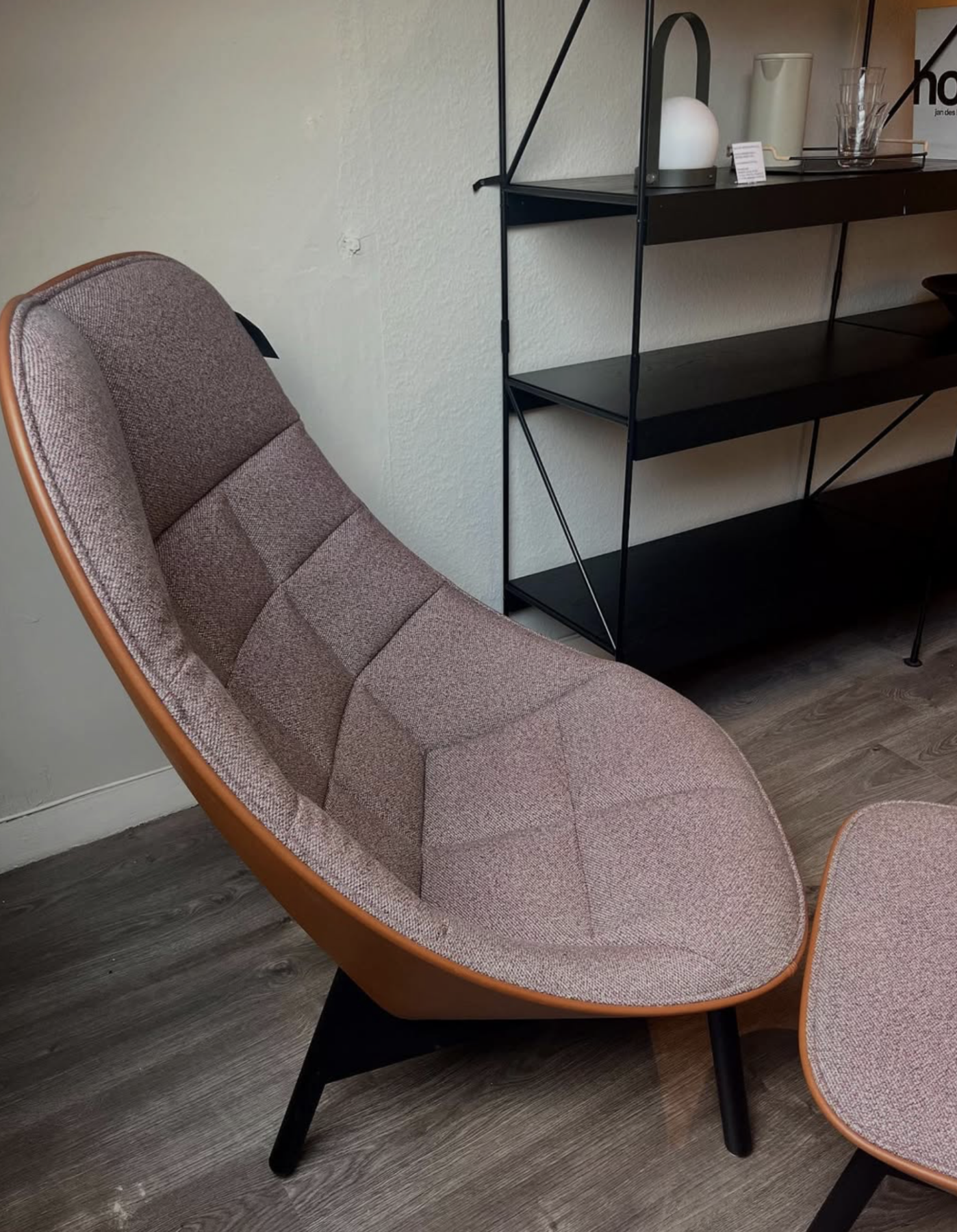 HAY fauteuil ‘Uchiwa’ met voetenbank - quilted met lederen achterzijde cognac - Van €3420,- voor €2052,-