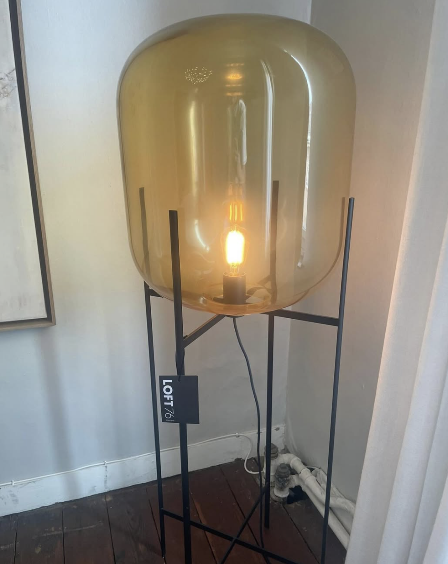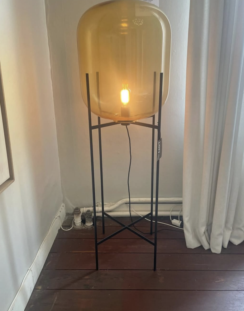 Pulpo vloerlamp - Oda Big - Uitvoering Amber glas, zwart frame AFM dia 45 x H 140 cm - Van €2178,- van €1300,-